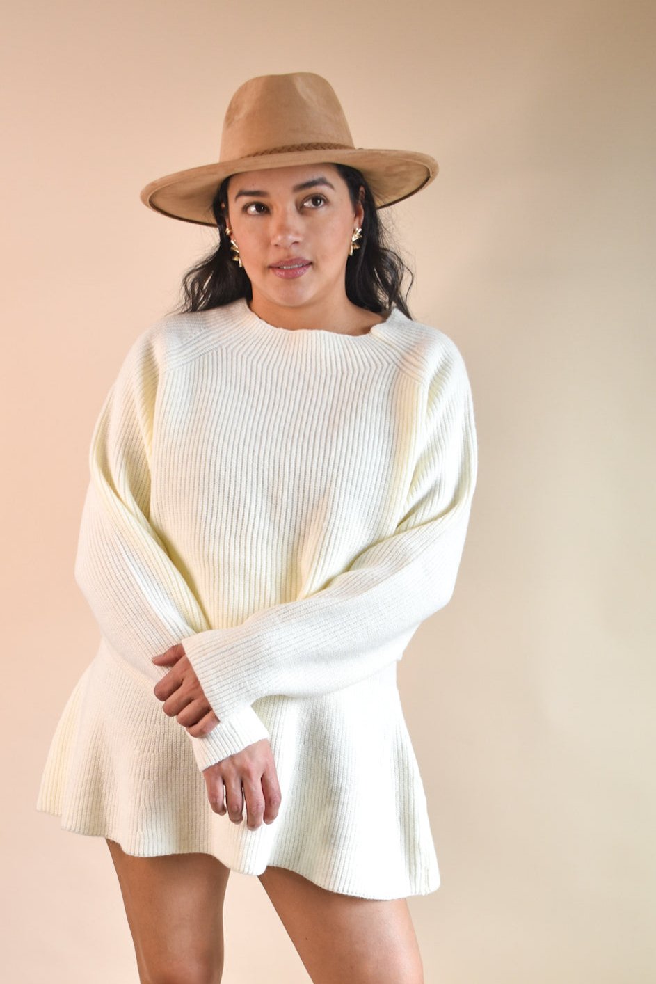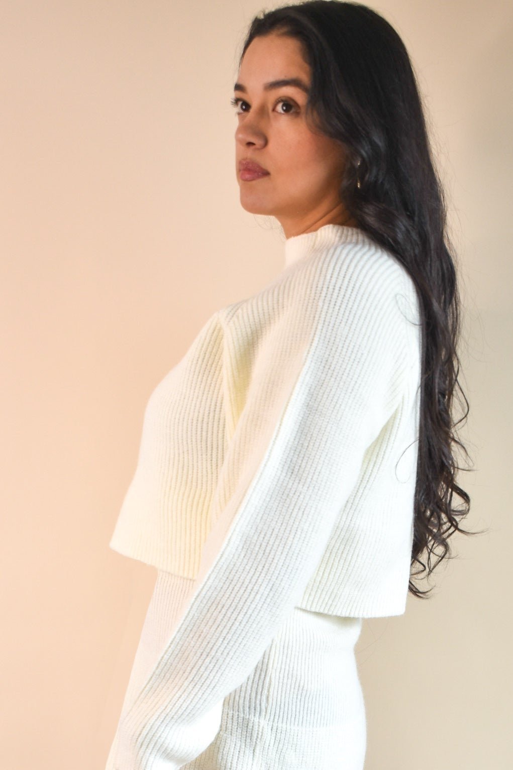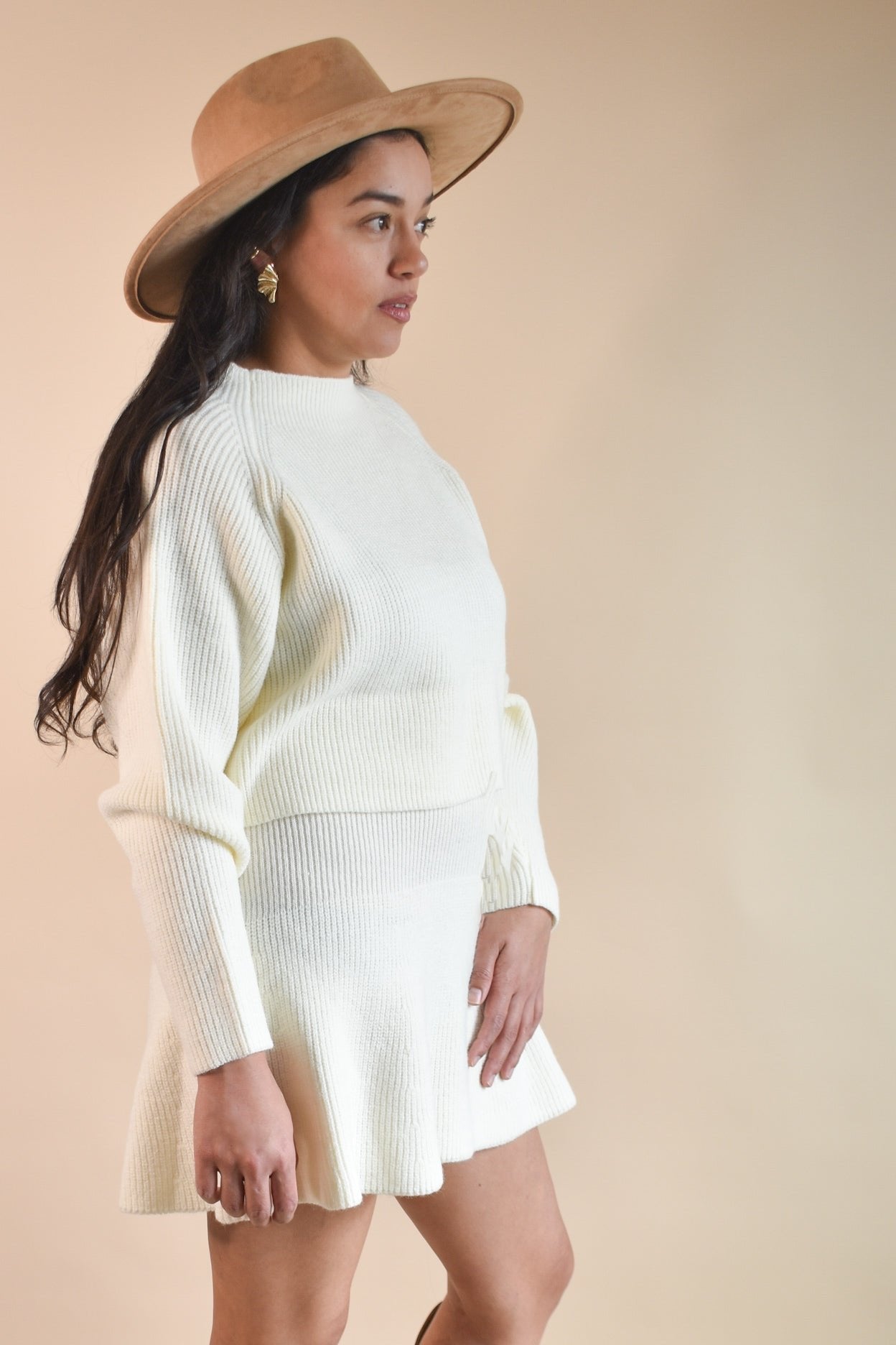 CREAM LONG SLEEVE RIBBED SWEATER KNIT TOP AND MATCHING SKIRT