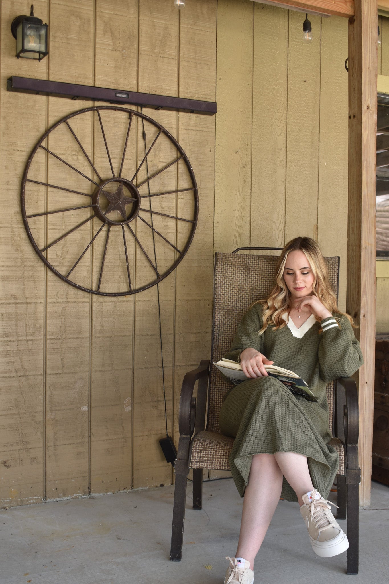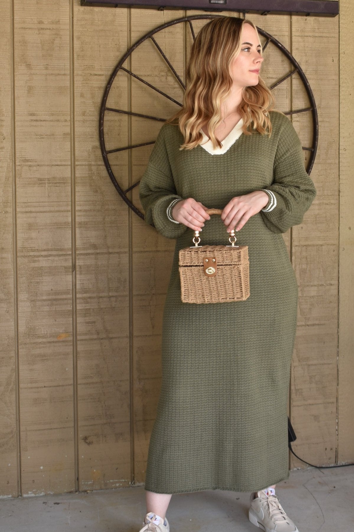 OLIVE COLLARED WAFFLE KNIT SWEATER DRESS
