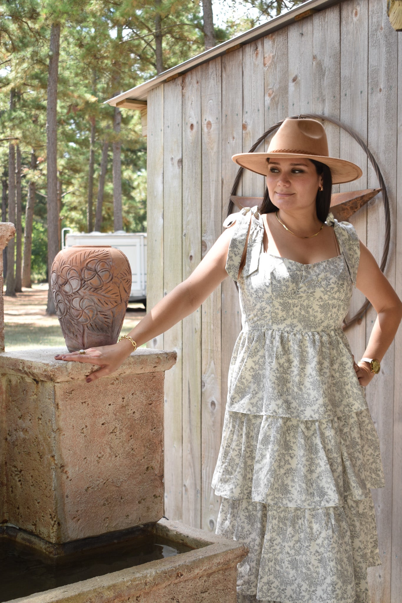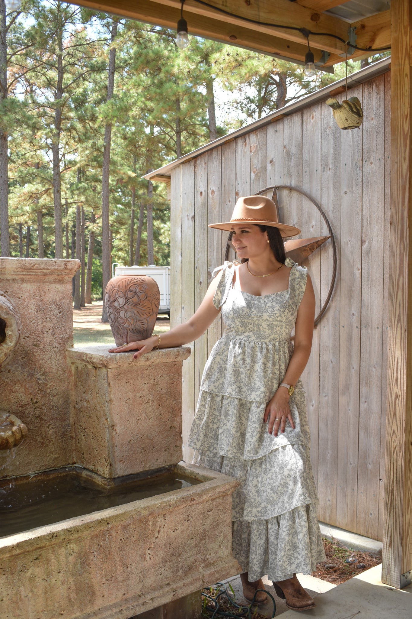 CREAM & BLACK FLORAL TIERED SHOULDER TIE STRAP DRESS